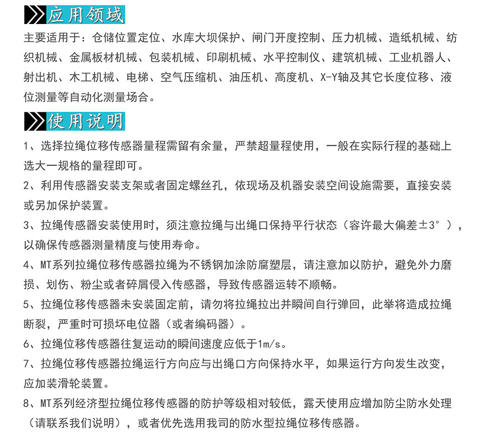 米蘭特MT拉繩位移傳感器安裝比較簡便,主要用于各類自動化機械設(shè)備位移測量與位置定位。