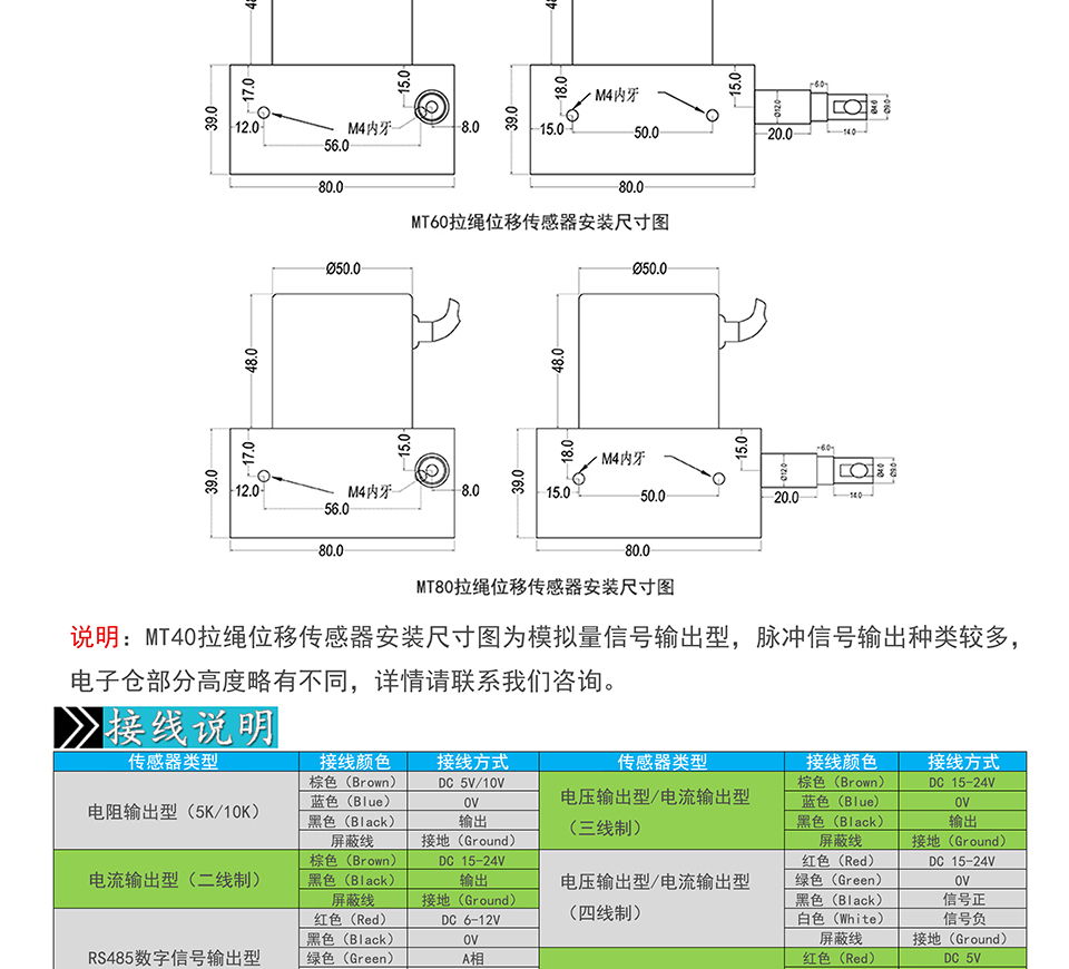 米蘭特MT40/60/80系列拉繩位移傳感器拉線編碼器